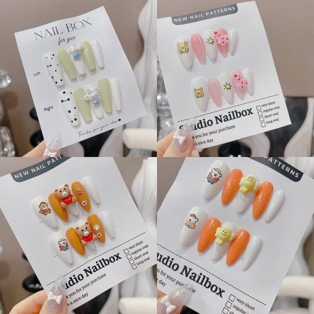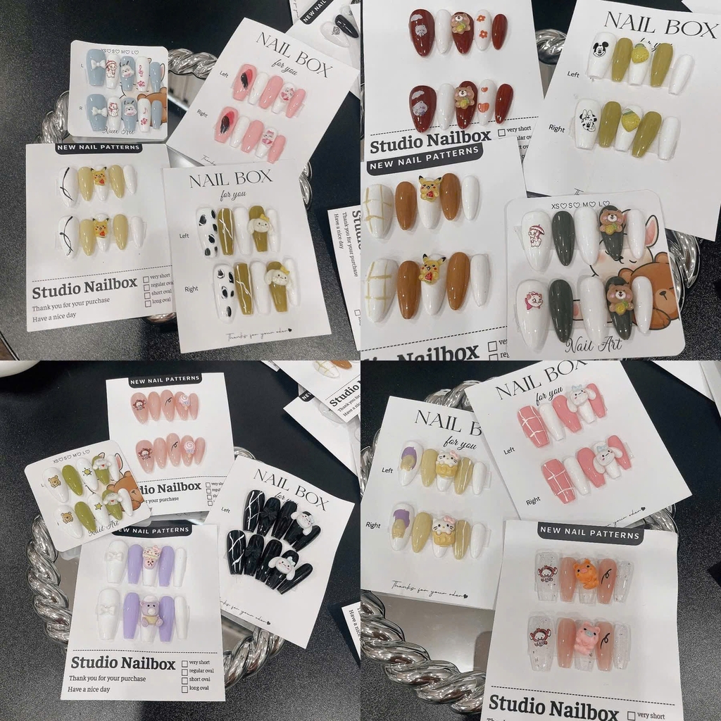 Thiết kế đẹp mắt: Mỗi bô móng được thiết kế tinh xảo, đính charm lống lỉnh, phù hợp nhiều phong cách từ ngọt ngào, dễ thương đến sang chảnh, quyến rũ.