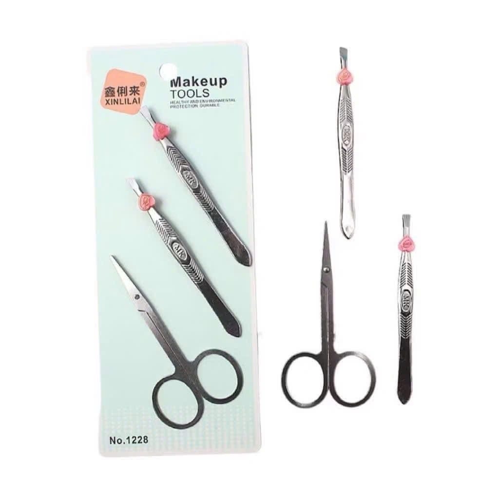BỘ 3 MÓN 2 NHÍP, KÉO MINI MAKEUP TOOLS NO1228 – NHỎ GỌN, TIỆN LỢI, CHUẨN CHĂM SÓC CÁ NHÂN