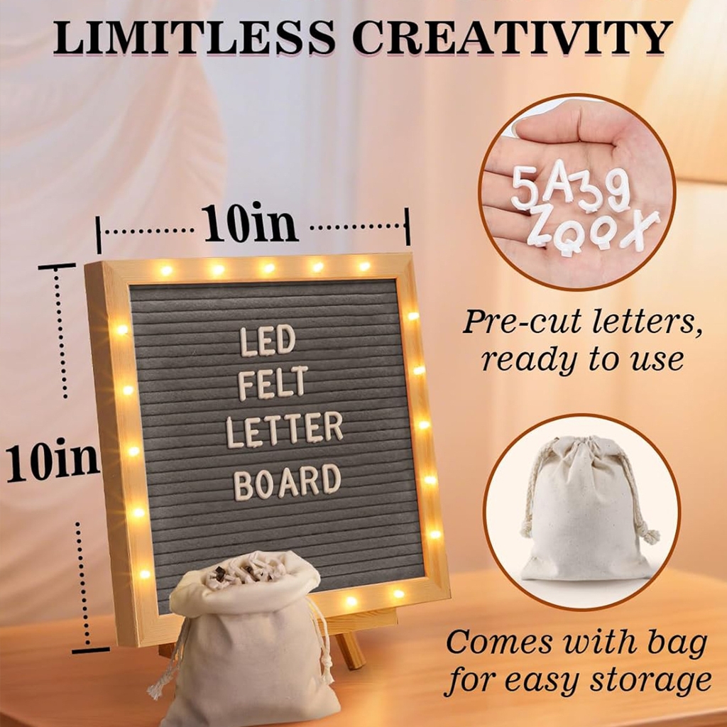 Bộ bảng gỗ gắn chữ kèm đế thiết kế vuông nhỏ gọn, tích hợp đèn LED trang trí giúp bảng nổi bật hơn khi sử dụng ban đêm. Dễ dàng thay đổi nội dung theo ý thích, phù hợp decor phòng ngủ, bàn học, bàn làm việc, quán cà phê hoặc làm bảng quote, bảng thông báo xinh xắn.