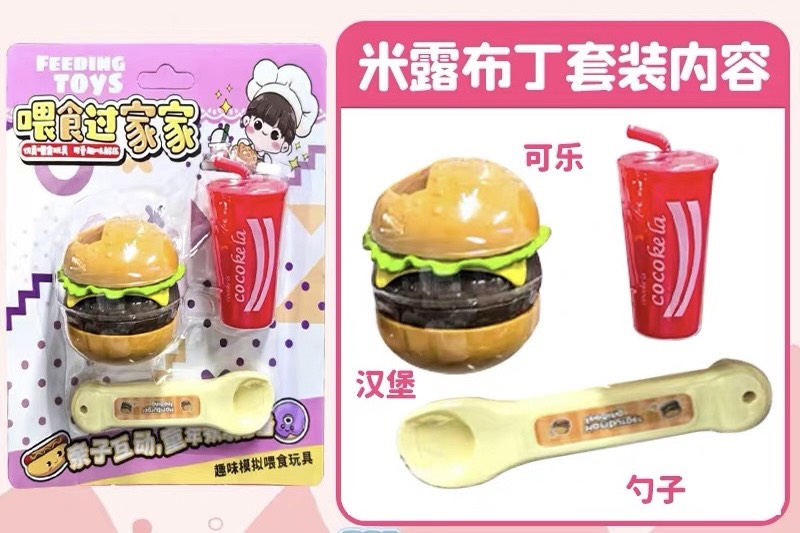 🧸 Thiết kế mô phỏng sinh động: gồm búp bê hoặc thú bông nhỏ kèm dụng cụ ăn uống (muỗng, dĩa, bình sữa, khay thức ăn...).