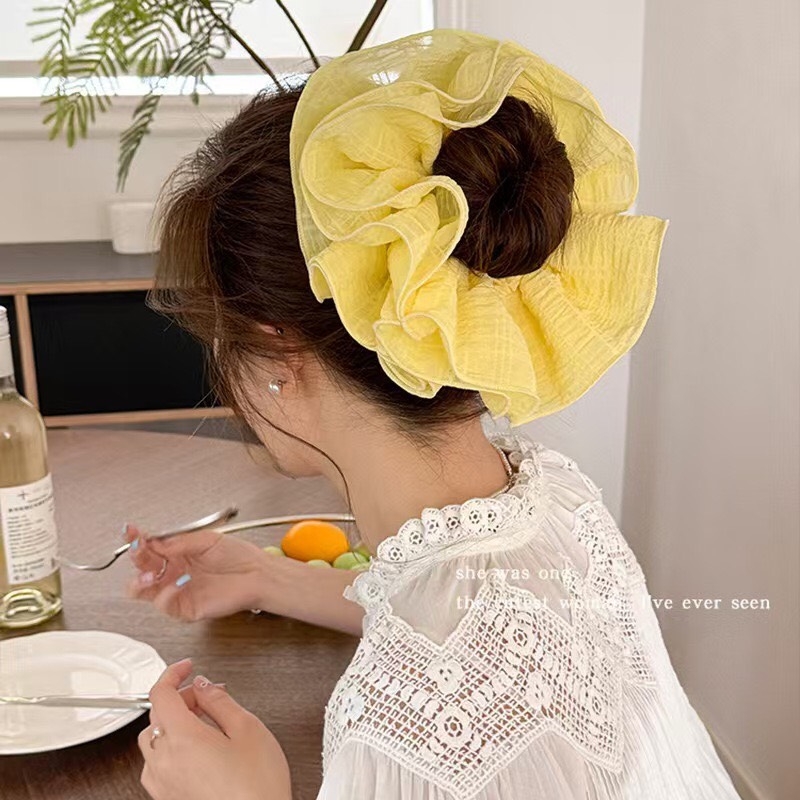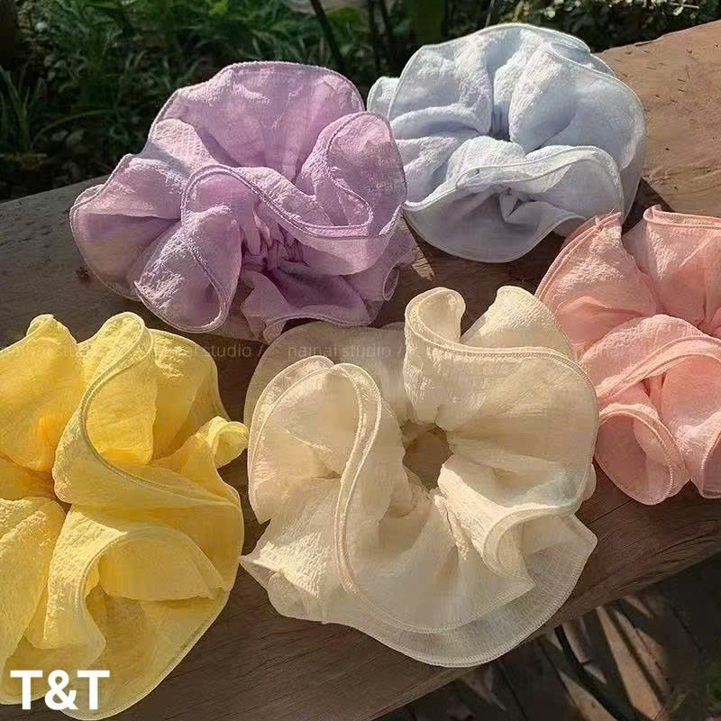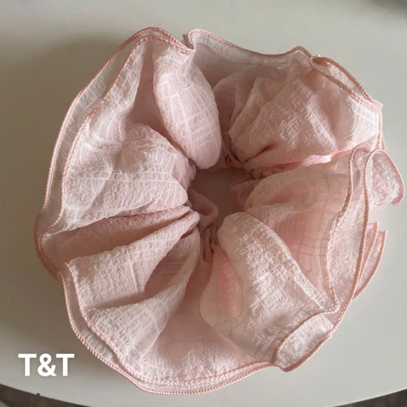 Cột Tóc Scrunchies Viền Bèo 4 Lớp Trơn Vải Nhăn – sự kết hợp hài hòa giữa sự nữ tính và tiện dụng, giúp bạn luôn xinh xắn và cuốn hút.