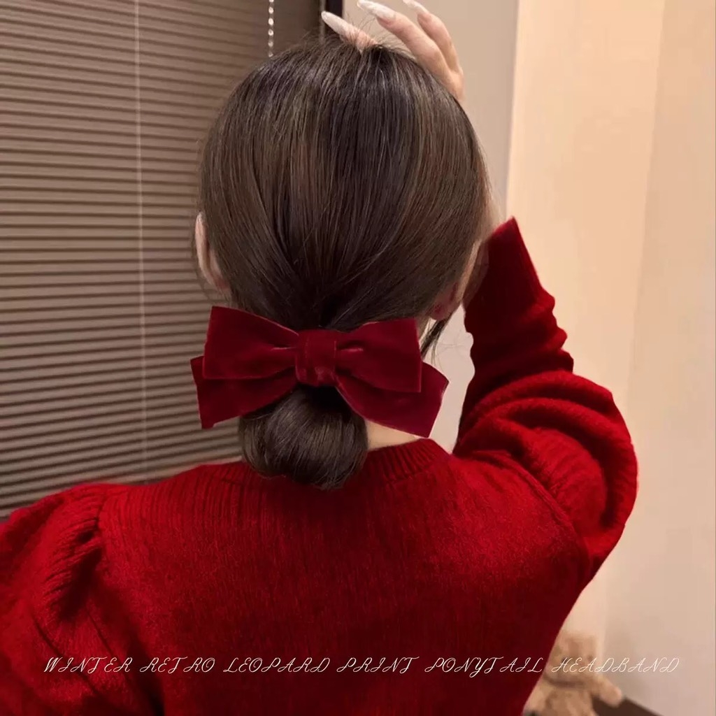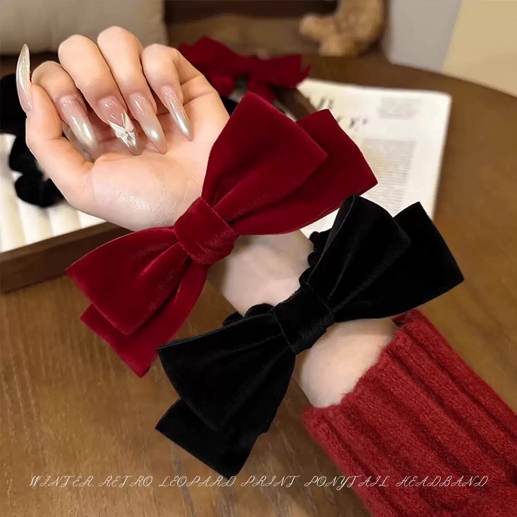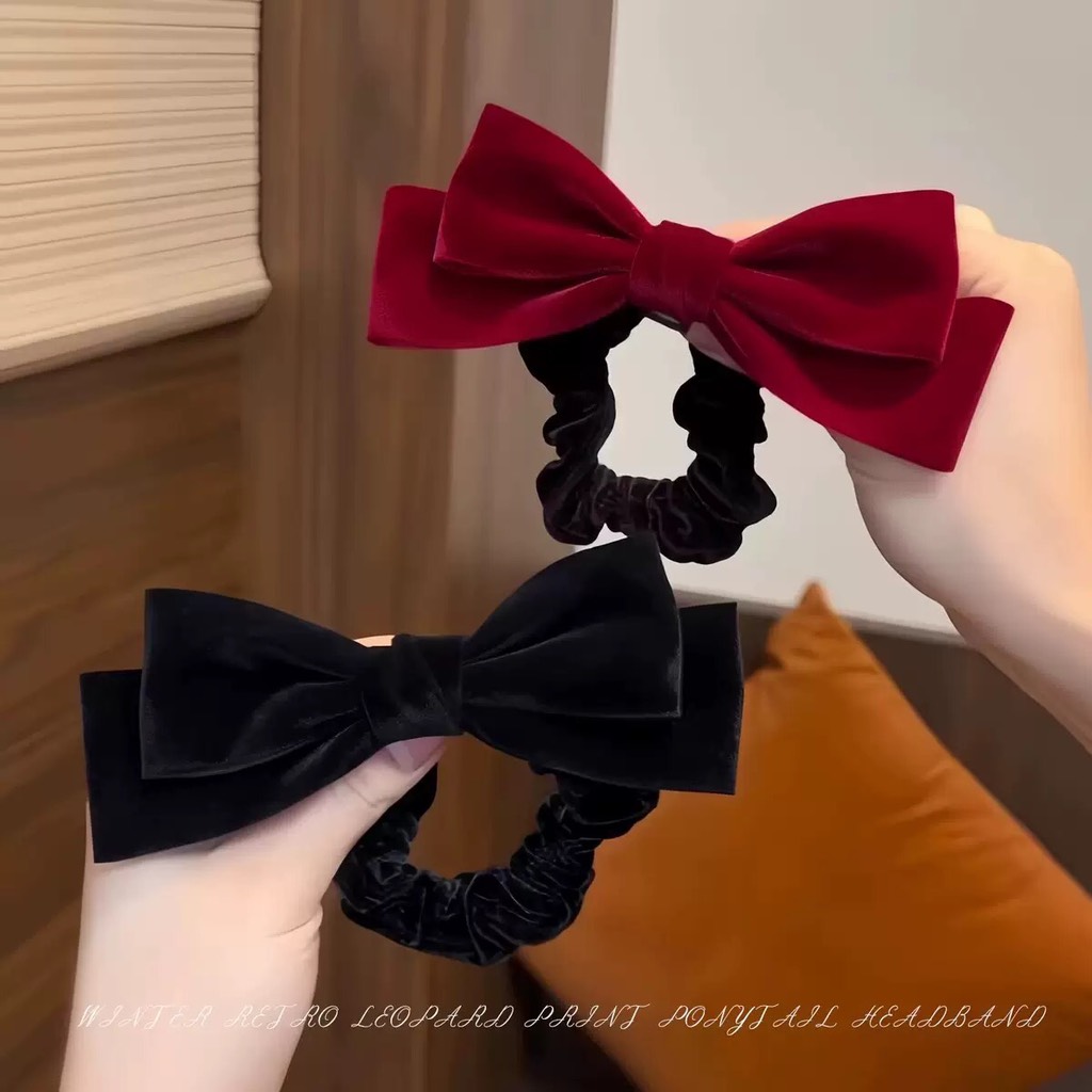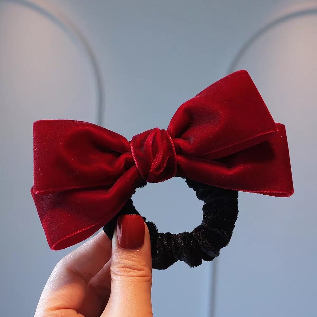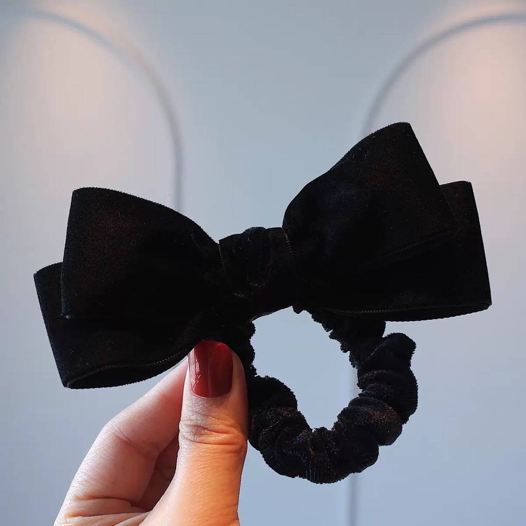 Cột Tóc Thun Nơ Nhung Màu Trơn Phong Cách Tiểu Thư
