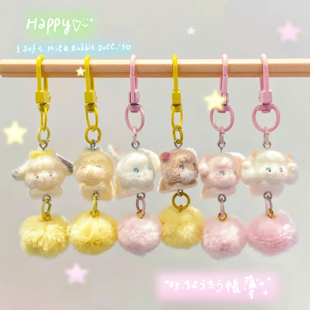 Dây Móc Điện Thoại Kiểu Charm Móc Khoá Thú Nằm Lông Cục Bông