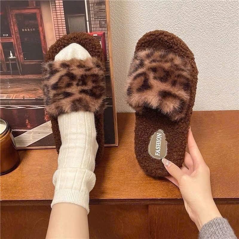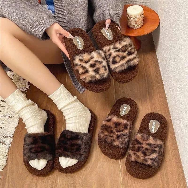 Dép Lông Xù Da Báo Đi Trong Nhà
