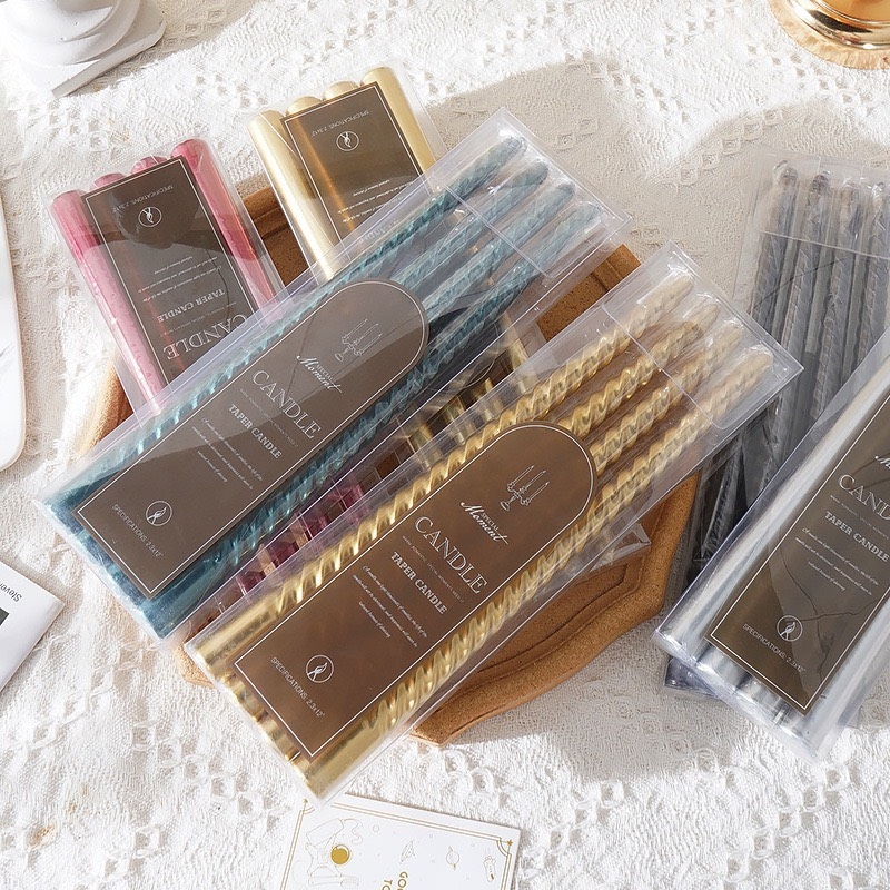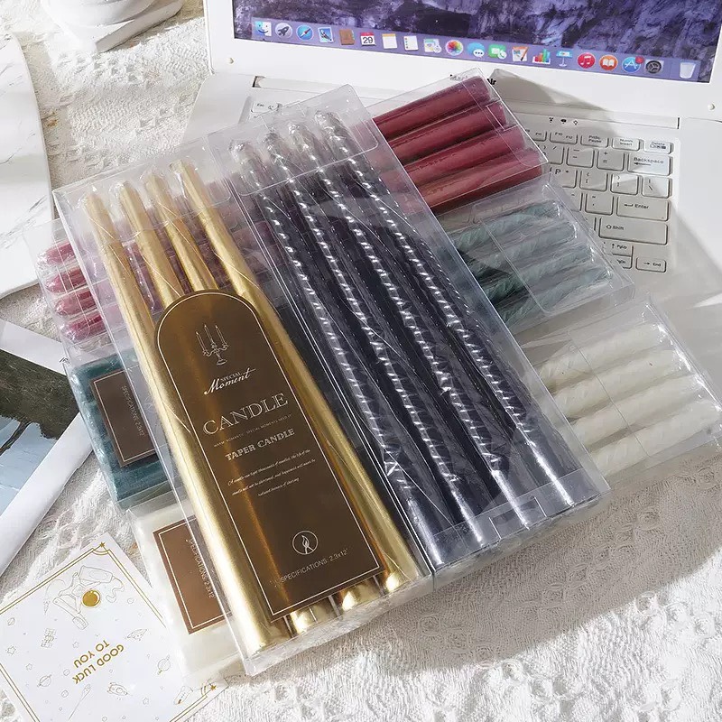Hộp 4 cây nến taper candle kiểu Châu Âu với thiết kế thon dài, thanh lịch là điểm nhấn hoàn hảo cho mọi không gian trang trí. Ánh nến dịu nhẹ mang đến cảm giác ấm cúng, lãng mạn, phù hợp cho nhiều dịp đặc biệt.