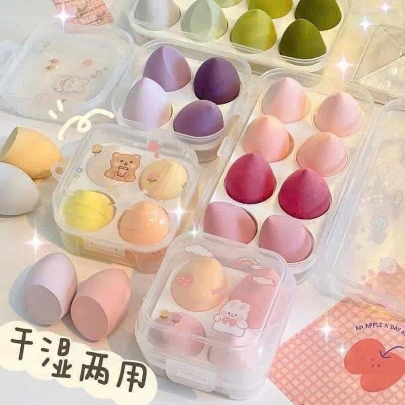 Set 4 mút trang điểm hình hồ lô xinh xắn, giúp tán kem nền, cushion, che khuyết điểm đều màu và tự nhiên.