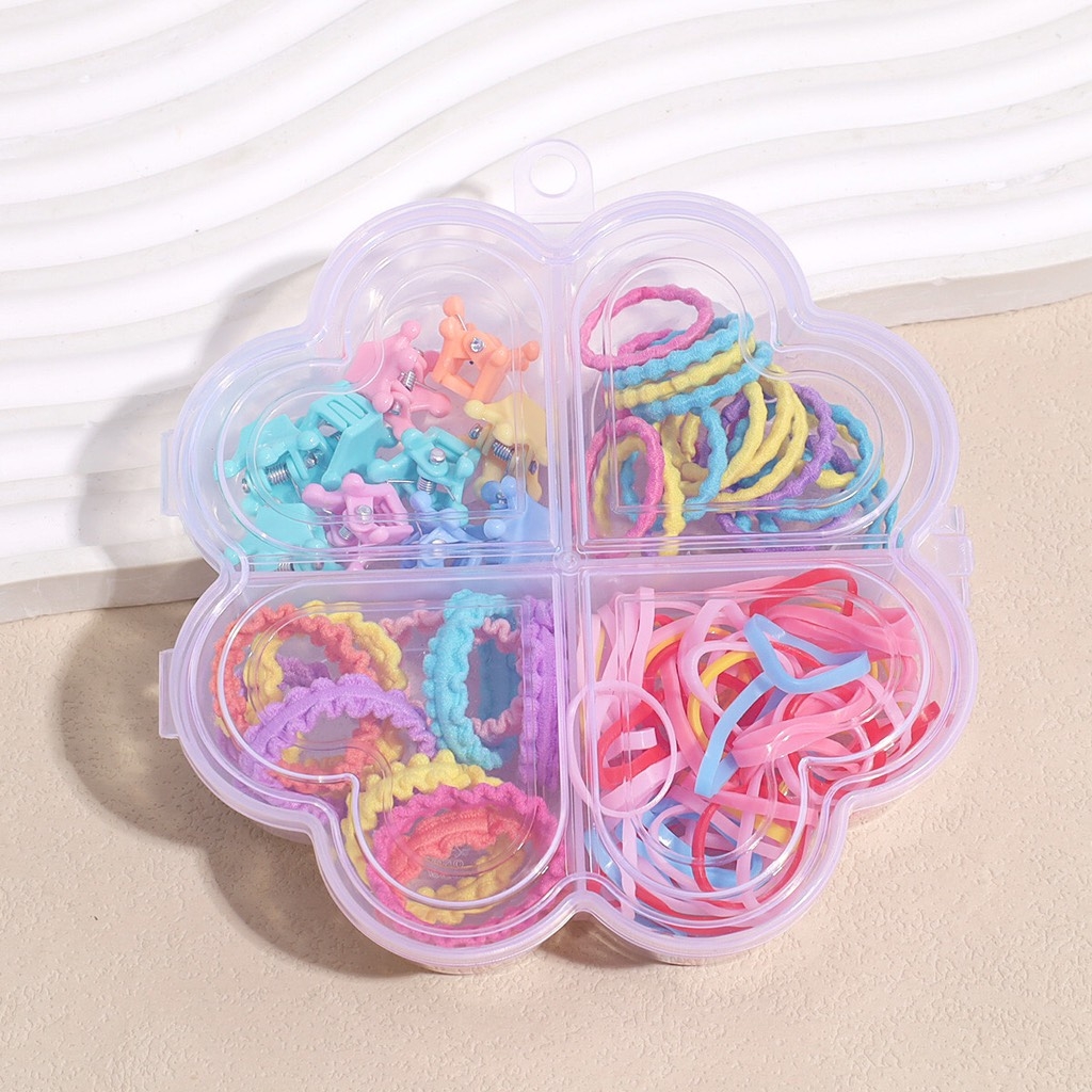 Tiện lợi và xinh xắn, Hộp 4 Ngăn Cỏ 4 Lá Dây Thun Cột Tóc + Kẹp Càng Cua Mini Bé là bộ phụ kiện tóc đáng yêu dành cho mọi cô gái.