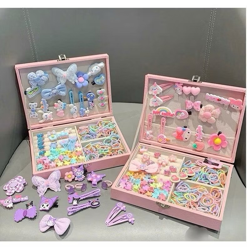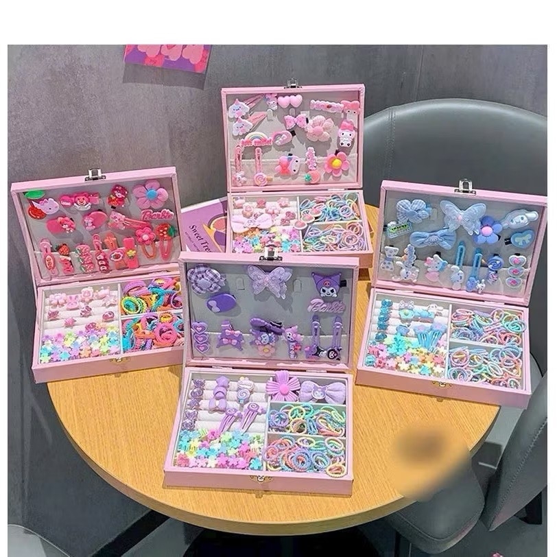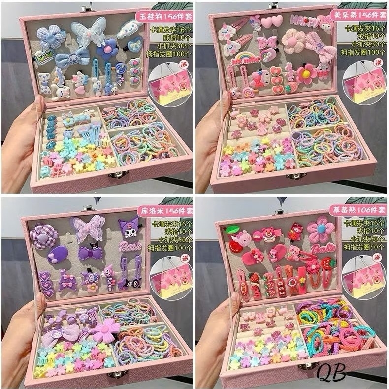 - Set đầy đủ 156 món: cột tóc, kẹp tóc đa dạng mẫu mã