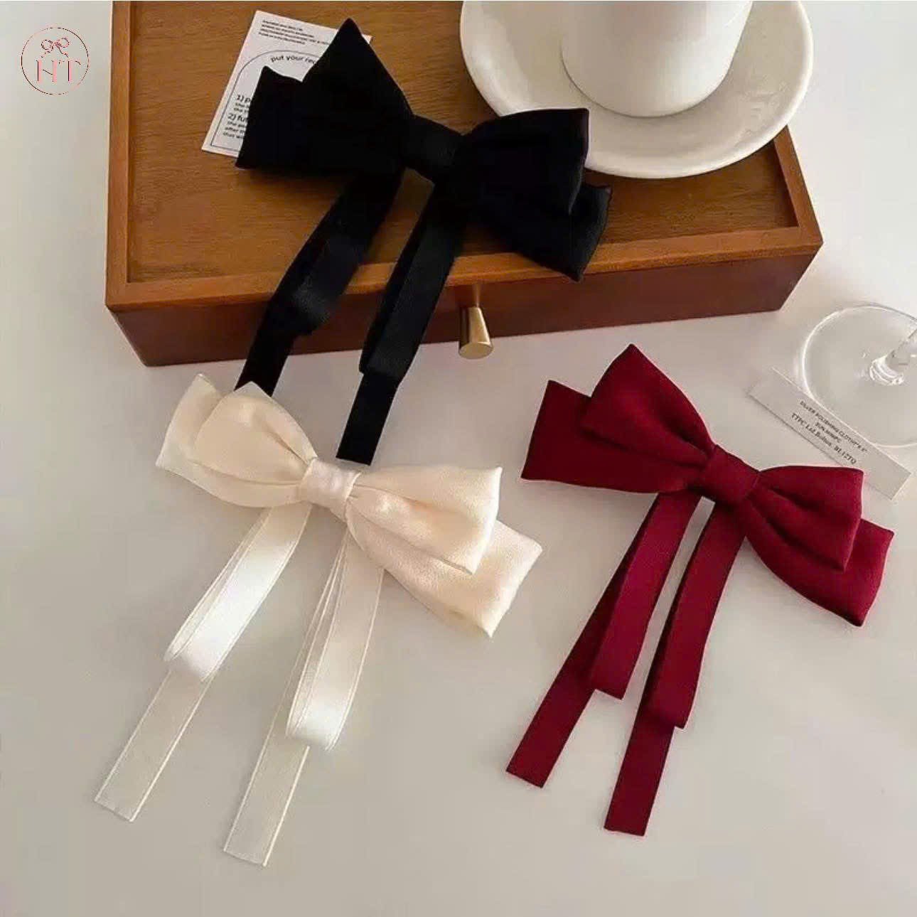 - Thiết kế nơ vải trơn thanh lịch, dễ phối đồ