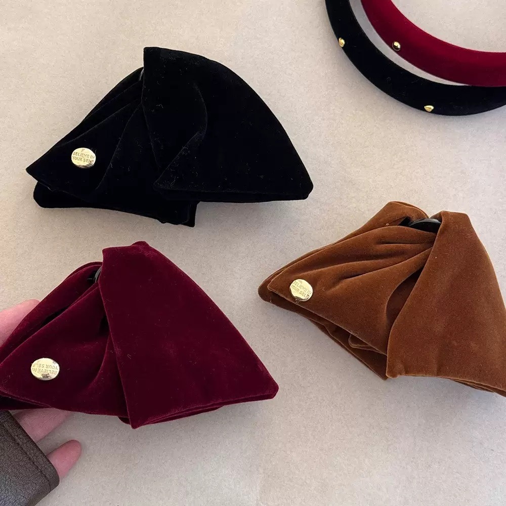 Kẹp tóc nhựa cung vải nhung trơn đính charm xoắn là phụ kiện nổi bật với thiết kế nơ nhung mềm mại kết hợp charm xoắn độc đáo. Sản phẩm giúp mái tóc thêm phần nữ tính và cuốn hút, phù hợp nhiều phong cách từ nhẹ nhàng đến cá tính.