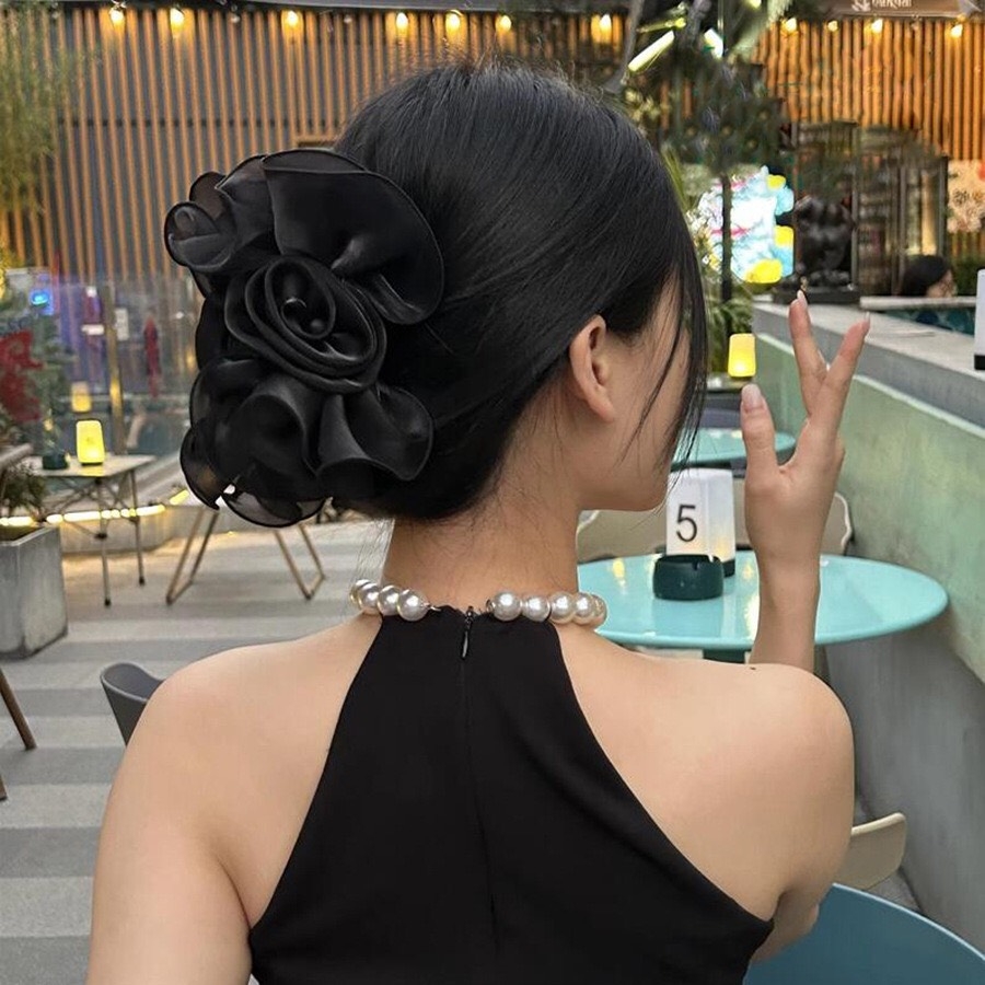 Kẹp Tóc Voan Nhựa Hình Cung Hoa Hồng Bèo Nhún