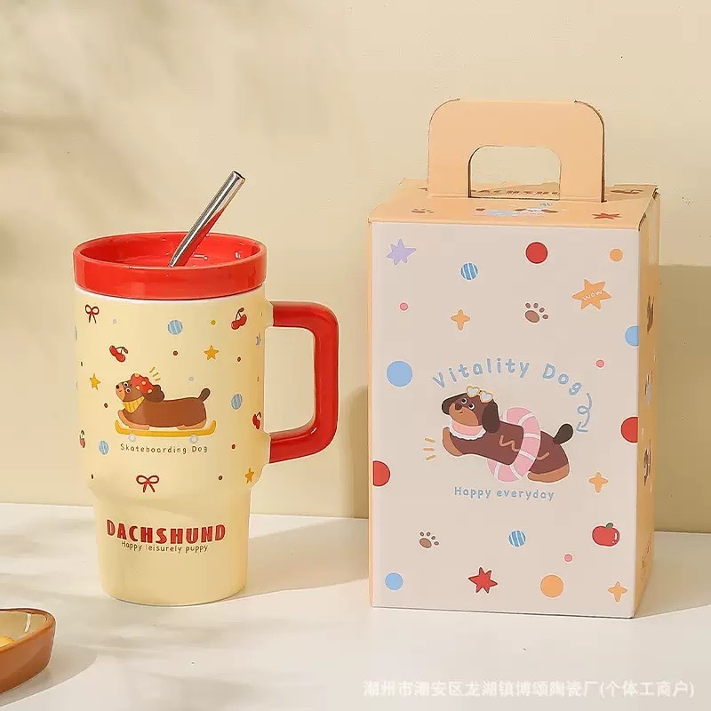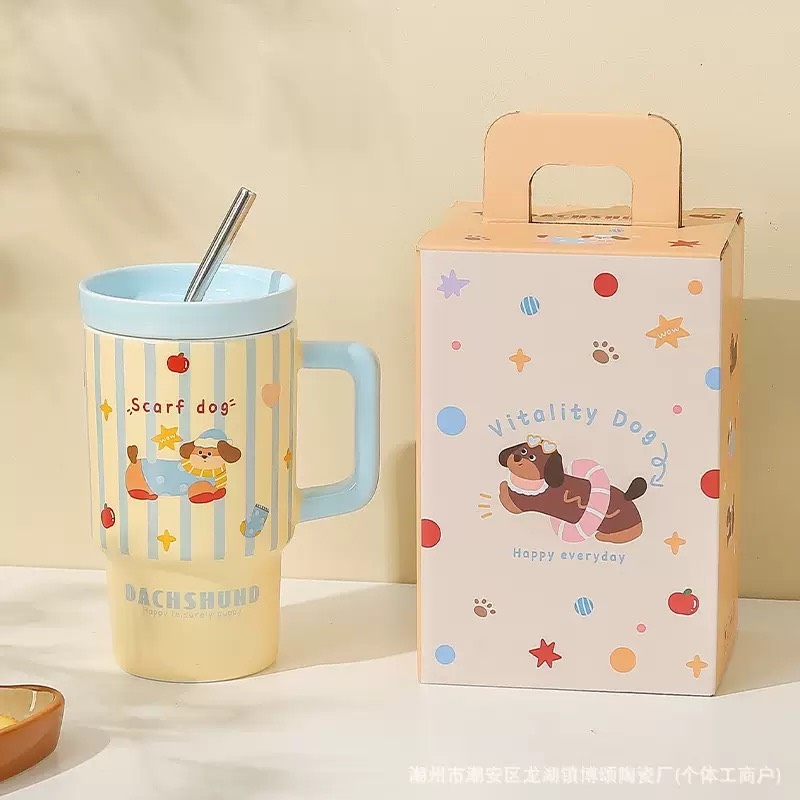 Ly sứ cao Dachshund là mẫu ly uống nước siêu đáng yêu với thiết kế chú chó lạp xưởng ngộ nghĩnh. Sản phẩm đi kèm nắp đậy và ống hút tiện lợi, giúp bạn dễ dàng sử dụng khi học tập, làm việc hoặc mang theo khi di chuyển.