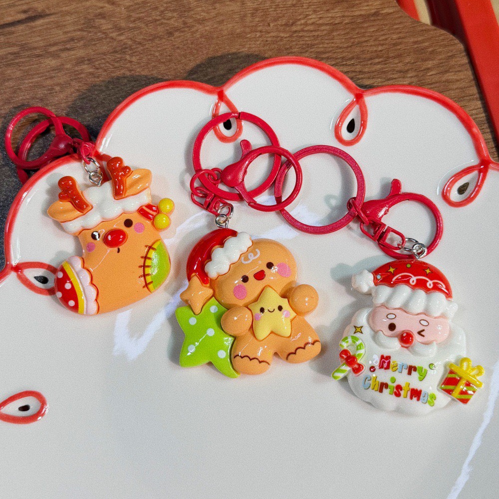 Móc khoá Noel mặt charm to cứng là phụ kiện nổi bật với thiết kế charm kích thước lớn, chắc chắn và bắt mắt. Các hình ảnh đặc trưng của Giáng Sinh như ông già Noel, cây thông, tuần lộc… được thể hiện sinh động, giúp tạo điểm nhấn ấn tượng.