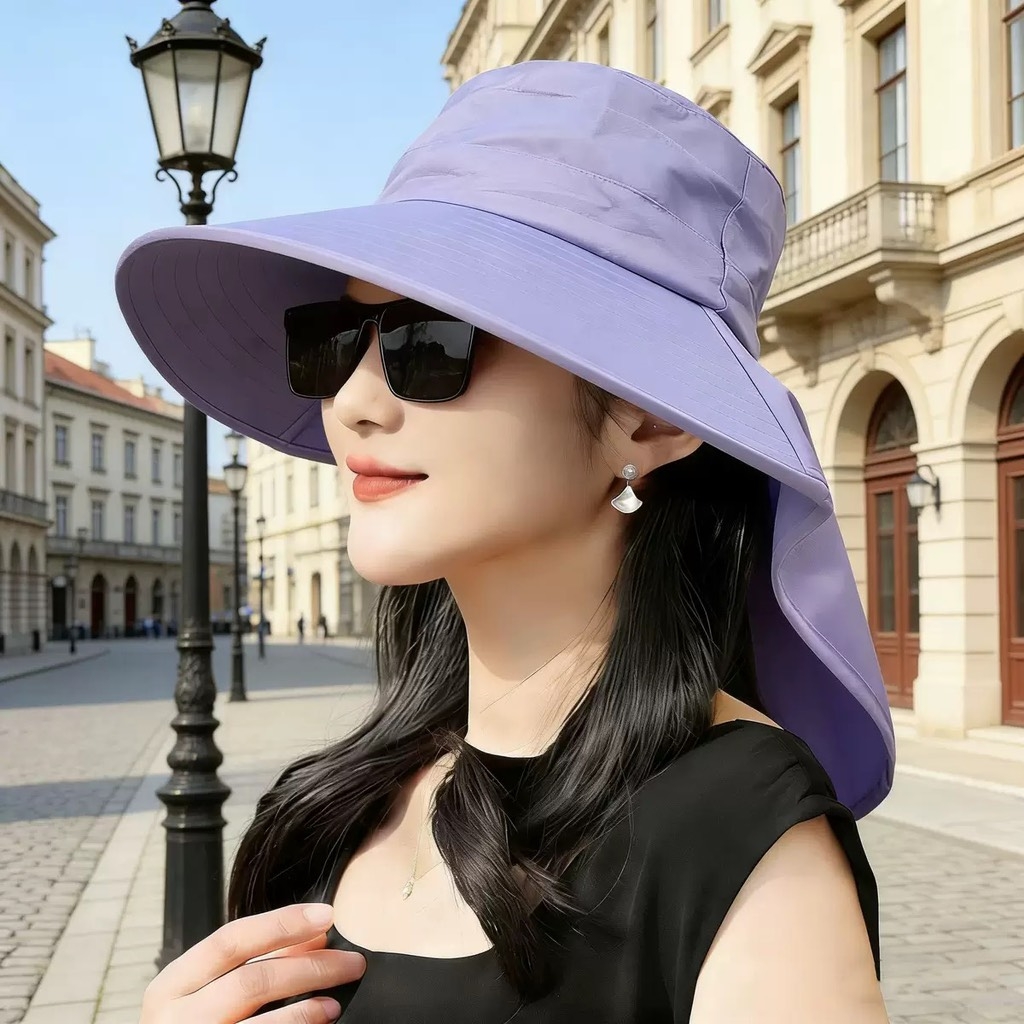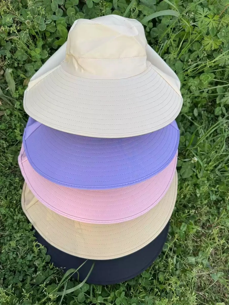 Chiếc mũ chống nắng vành rộng giúp bảo vệ toàn diện khuôn mặt và cổ dưới ánh nắng gay gắt, thiết kế tiện lợi có dây và nút gài chắc chắn.