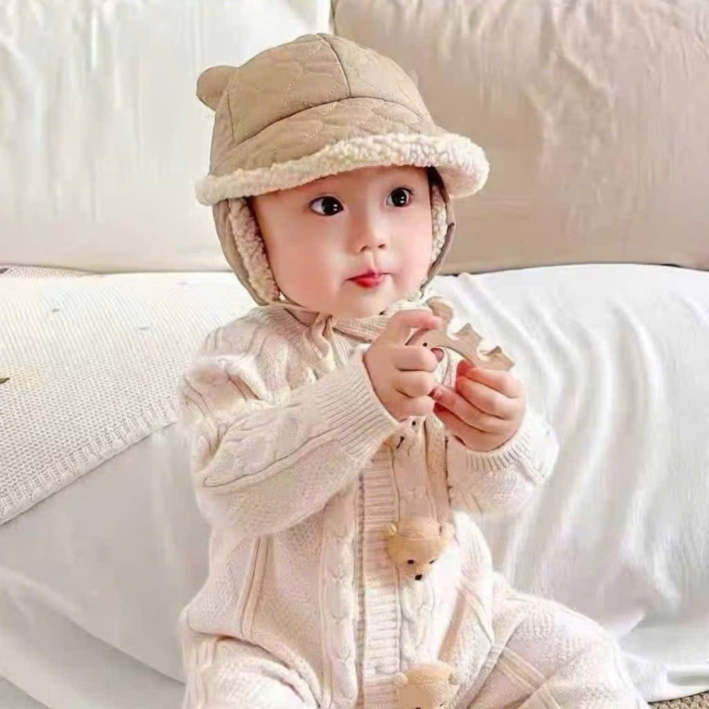 Kiểu dáng: Có bịt tai và dây cột cố định, không lo tuột khi bé vận động