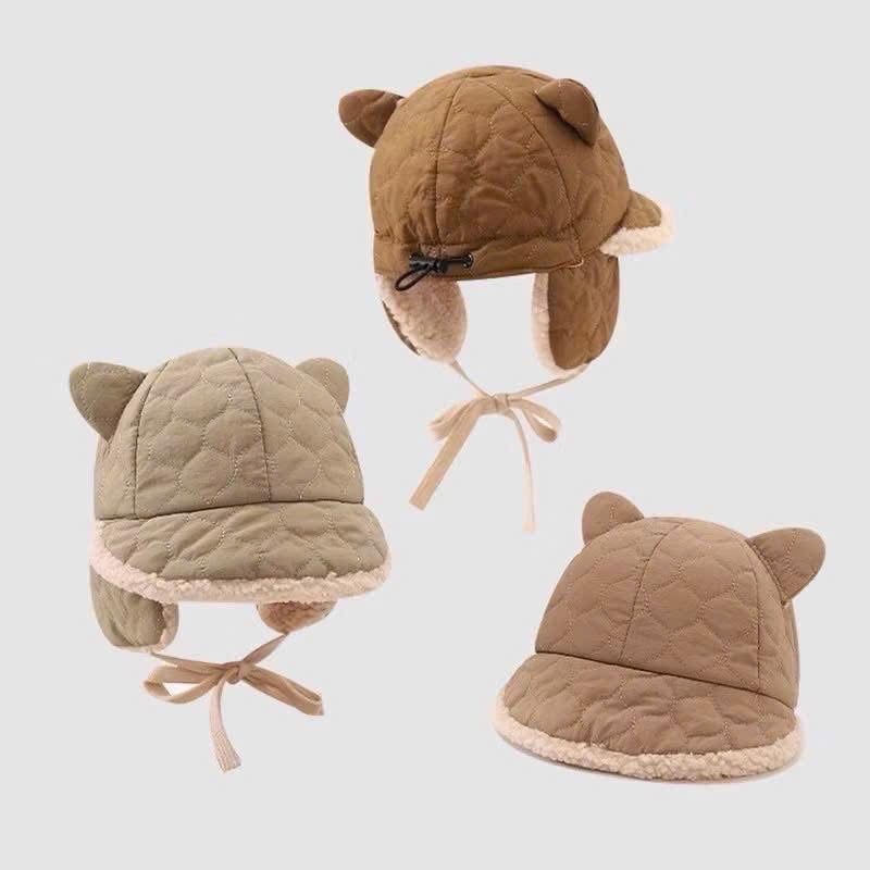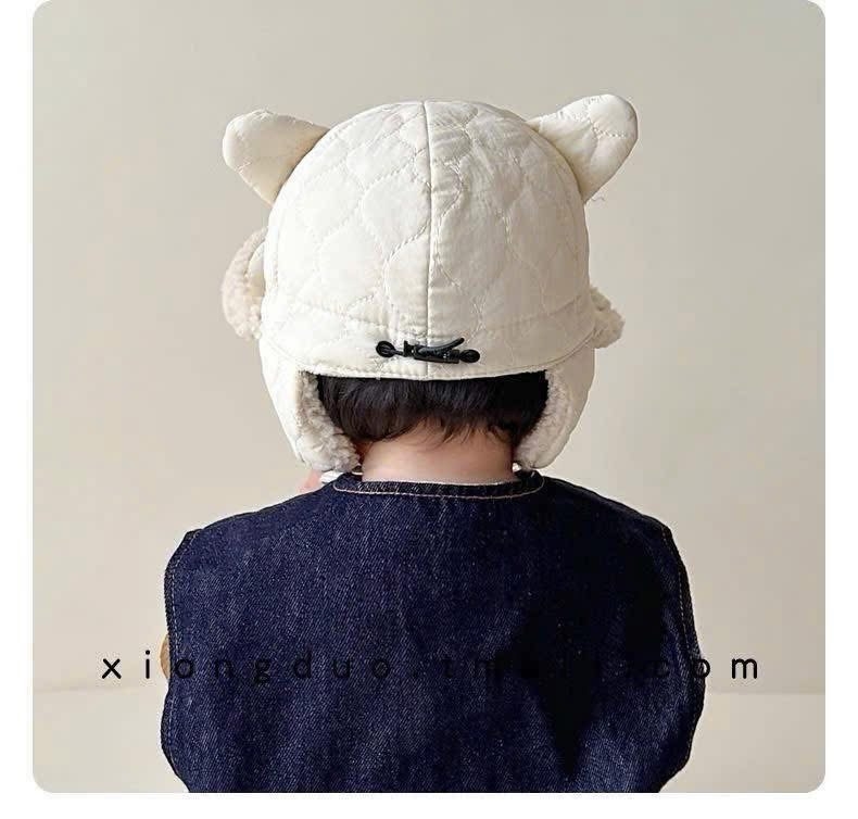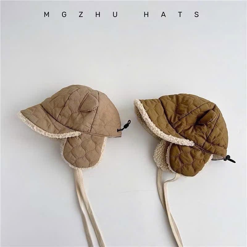 Mũ Dù Phối Lông Bịt Tai Cho Bé Kèm Dây Cột