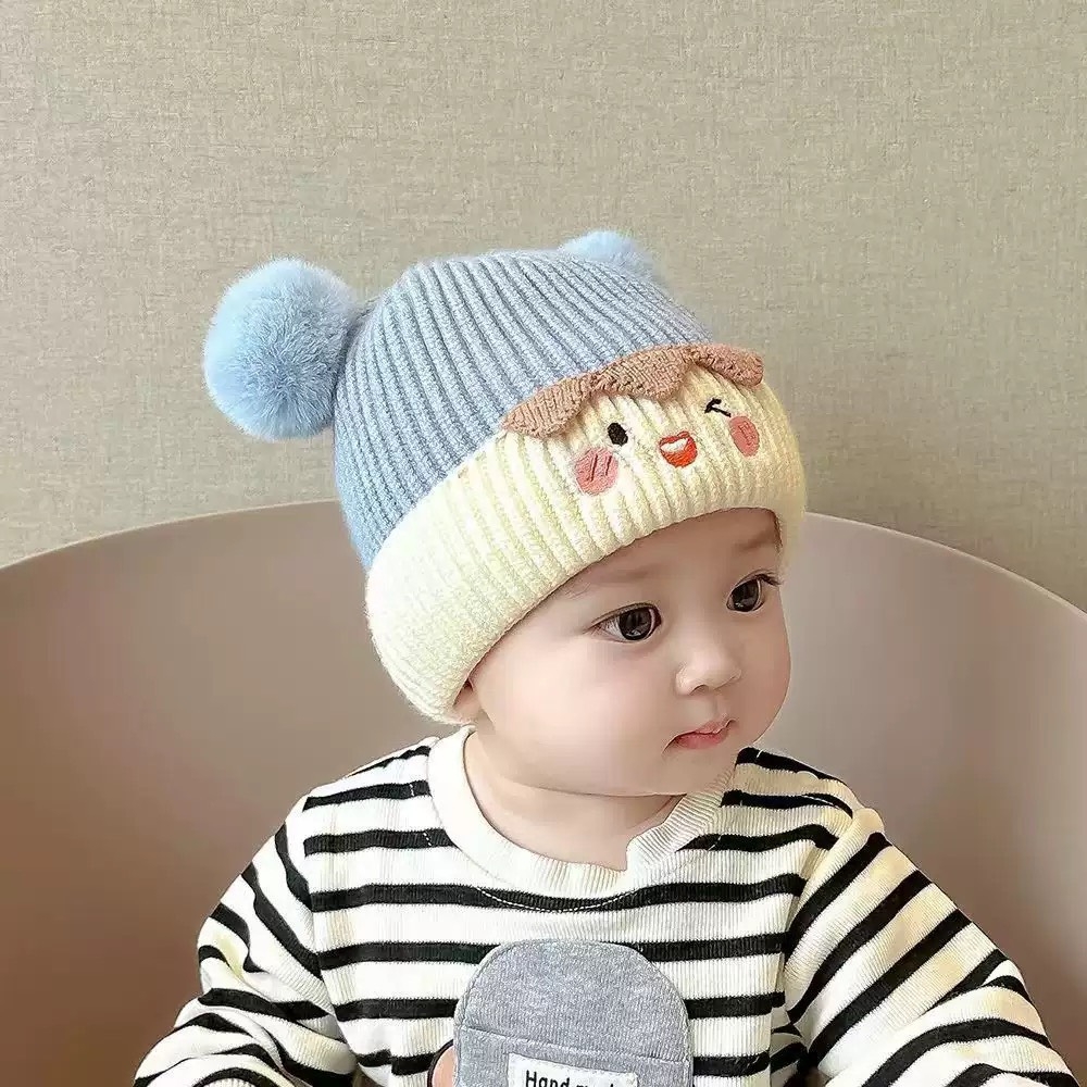 Mũ len giữ ấm cho bé với thiết kế mặt cười đáng yêu kết hợp tai gấu lông xù siêu dễ thương. Chất liệu len mềm mại, ấm áp, giúp bé luôn thoải mái trong những ngày thời tiết lạnh. Kiểu dáng nổi bật, phù hợp cho bé đội đi học, đi chơi hoặc chụp ảnh.
