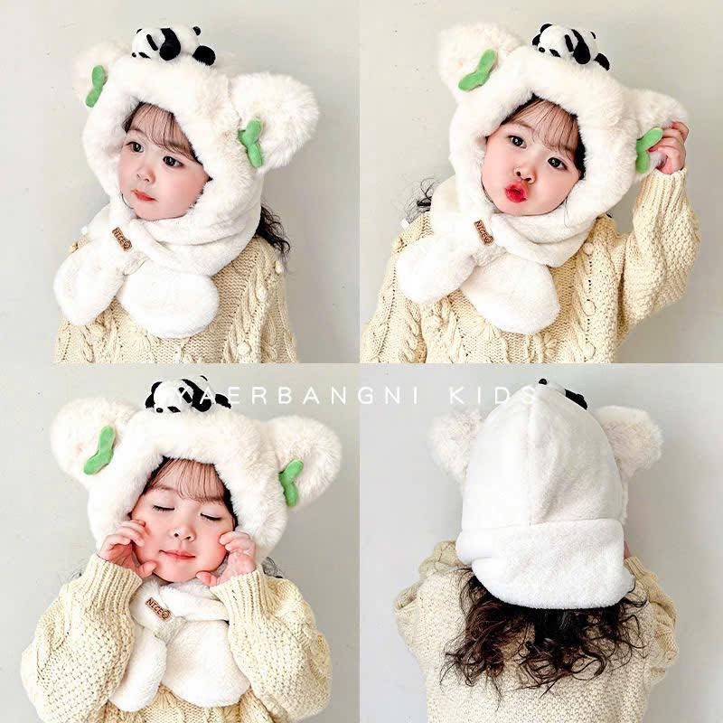 Mũ lông kết hợp khăn choàng cổ 2in1 hình gấu trúc Panda là phụ kiện mùa đông cực kỳ đáng yêu dành cho bé. Thiết kế thông minh vừa là mũ giữ ấm đầu, vừa là khăn giữ ấm cổ, giúp bé luôn ấm áp mà vẫn nổi bật với phong cách dễ thương.