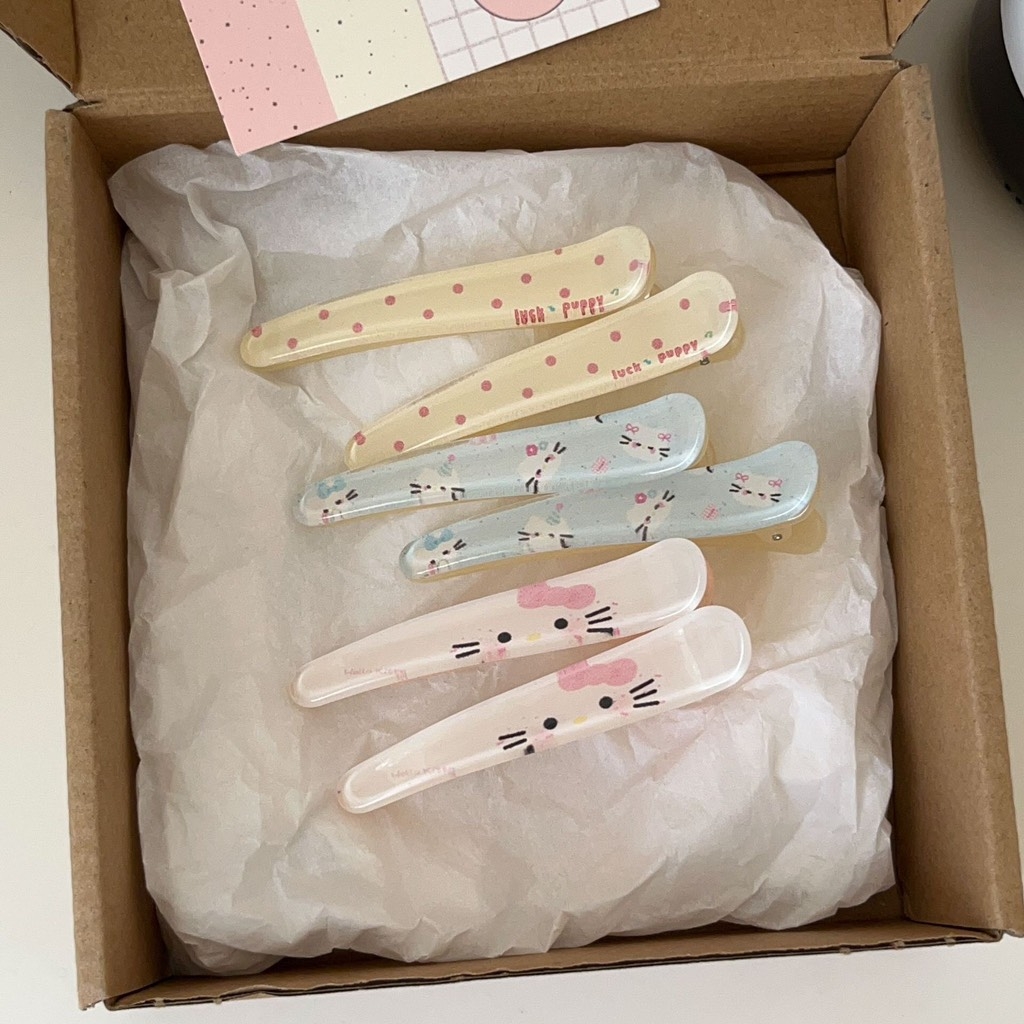 Set 2 kẹp tóc mỏ vịt với thiết kế hoạt hình dễ thương, đáng yêu, phù hợp cho cả bé gái và các bạn nữ yêu thích phong cách trẻ trung. Kẹp dài khoảng 8cm, ôm tóc chắc chắn, dễ sử dụng hằng ngày.