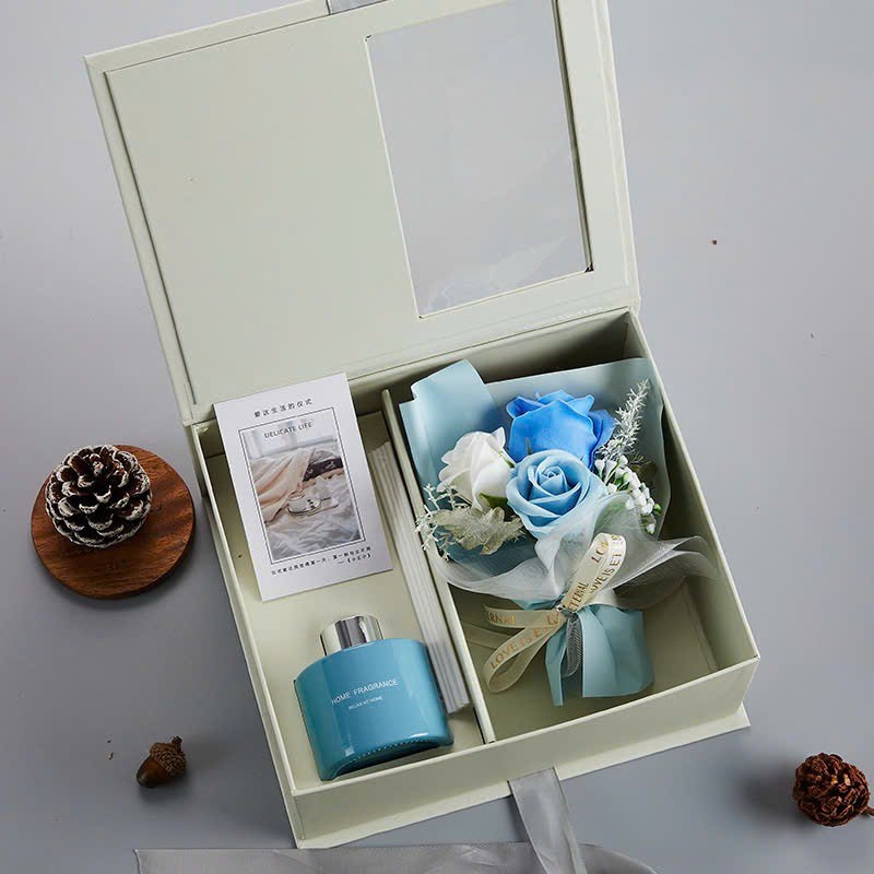 Set Hộp Quà Tinh Dầu Hương Nước Hoa Kèm Bó Hoa