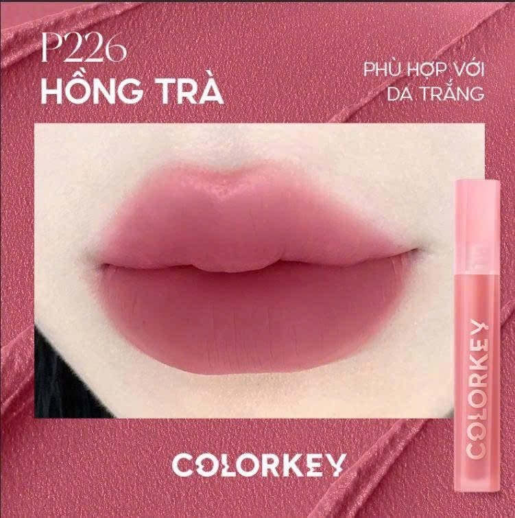 Son kem lì Colorkey Airy Velvet P226 Hồng Trà là màu son nhẹ nhàng, nữ tính với tông hồng trà trendy dễ dùng hằng ngày. Chất son mềm mịn, nhẹ môi và lên màu chuẩn, giúp đôi môi căng mịn tự nhiên.