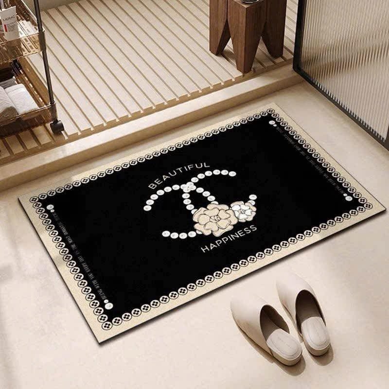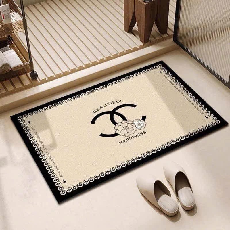 Thảm lau chân chống trượt họa tiết thương hiệu mang phong cách sang trọng, hiện đại. Mặt trên thảm in hoạ tiết logo thương hiệu nổi tiếng hoặc kiểu chữ tinh tế, tăng tính thẩm mỹ và độ độc đáo cho không gian sử dụng.
