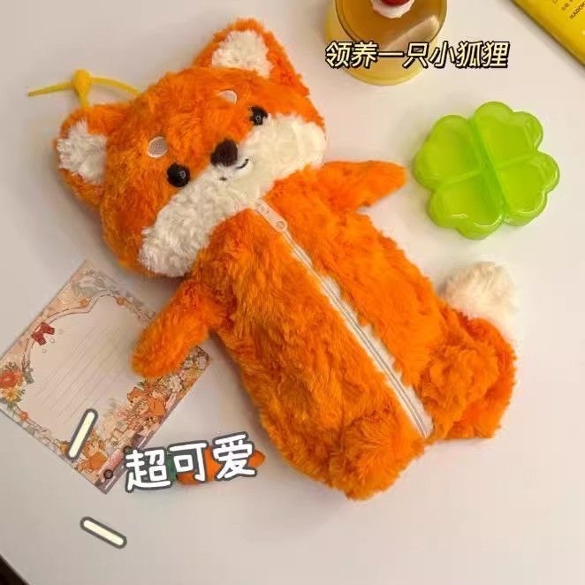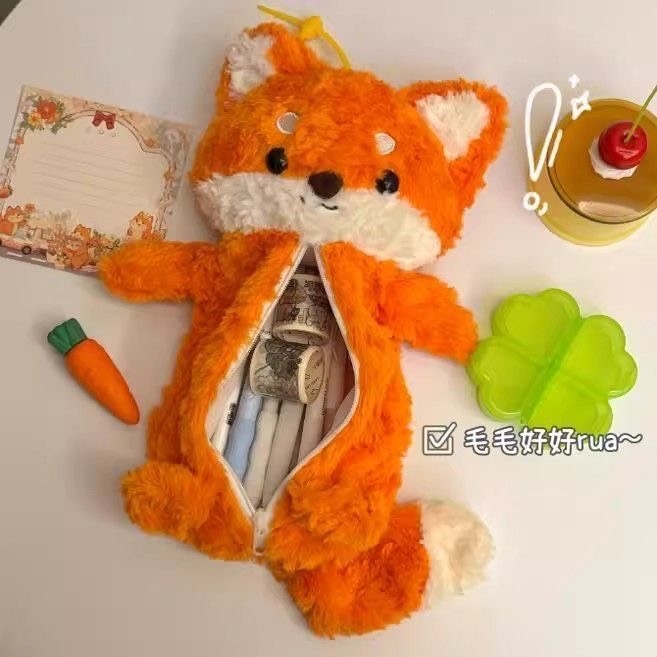 Túi đựng bút thiết kế hình thú cáo cam dễ thương với lớp lông mịn mềm mại, màu cam nổi bật kết hợp chi tiết tai nhọn và gương mặt đáng yêu. Sản phẩm mang phong cách cute, phù hợp cho học sinh, sinh viên hoặc làm quà tặng xinh xắn.