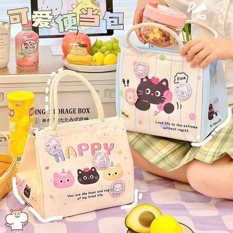 Túi có nhiều mẫu hình in đáng yêu như thú cưng, hoa lá, trái cây,... là lựa chọn lý tưởng để mang theo bữa trưa gọn nhẹ mà vẫn thời trang mỗi ngày.