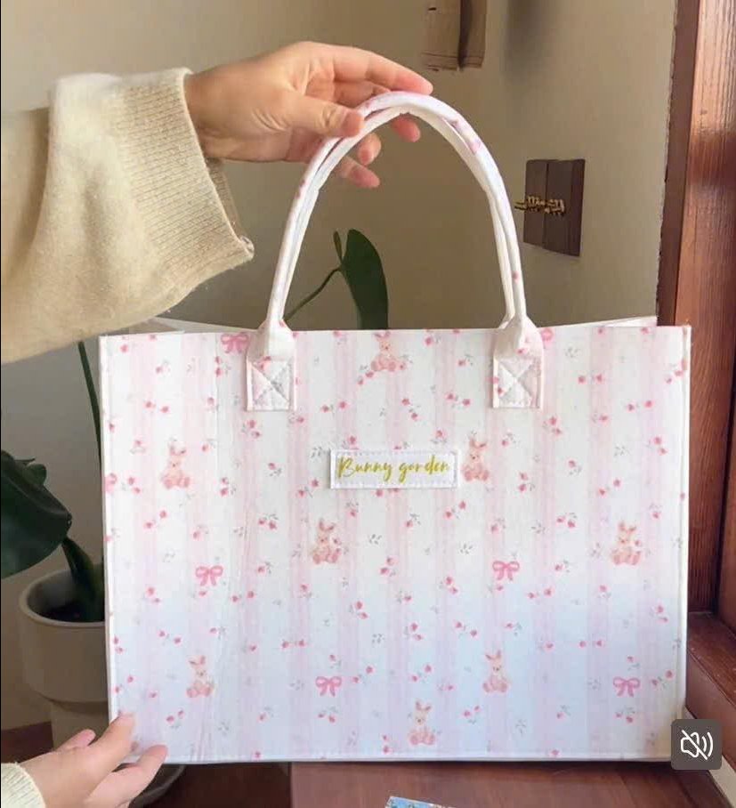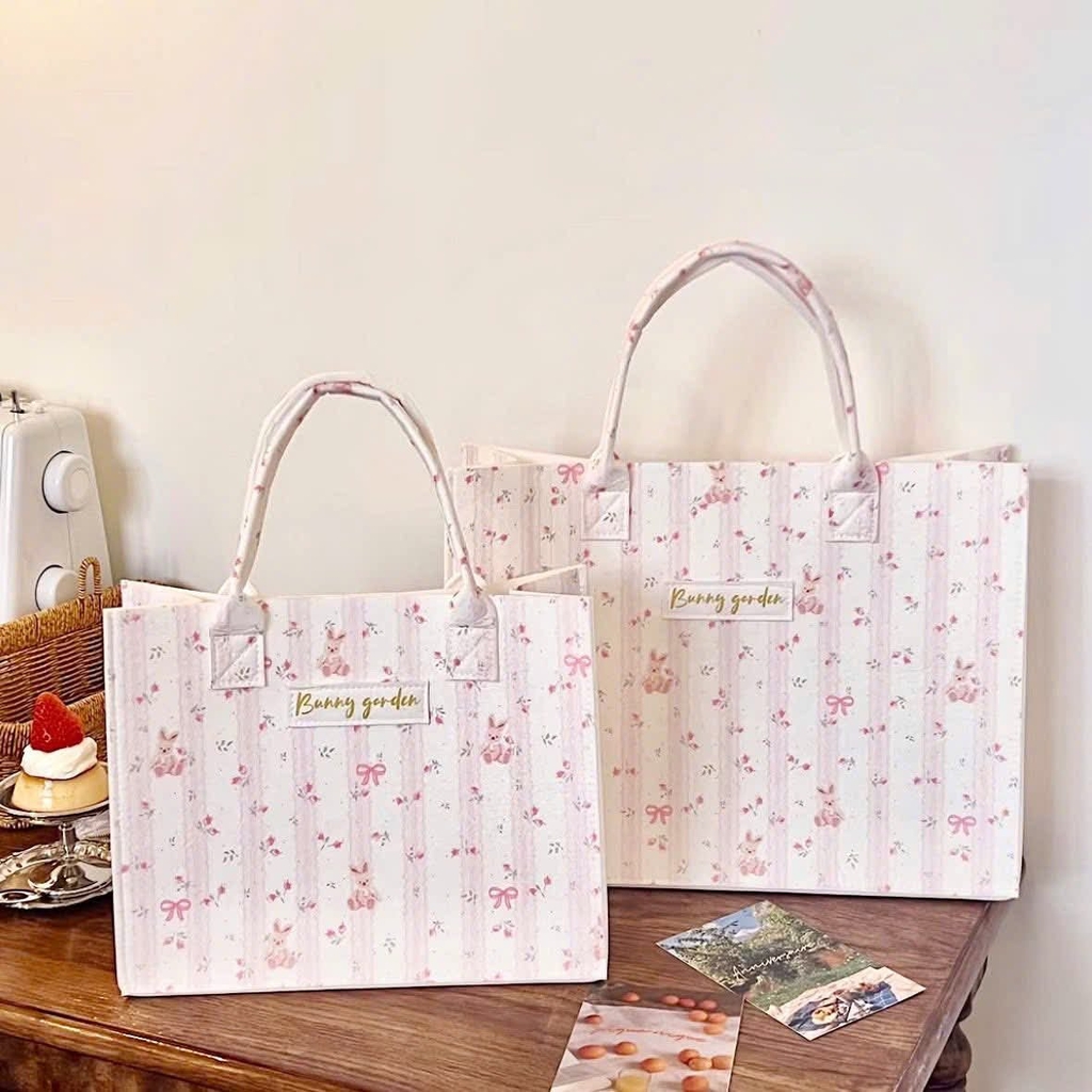 Túi xách vải nỉ phong cách Hàn Quốc, hoạ tiết hoa nhỏ dễ thương kèm chi tiết nơ thỏ Bunny Garden xinh xắn. Tông màu pastel ngọc ngào, phù hợp với các bạn gái yêu thích phong cách nữ tính, dễ thương.Vải nỉ cao cấp, mềm mại, được may chắc chắn. Bên trong lót vải trơn, giúp giữ hình dáng túi đẹp mắt.