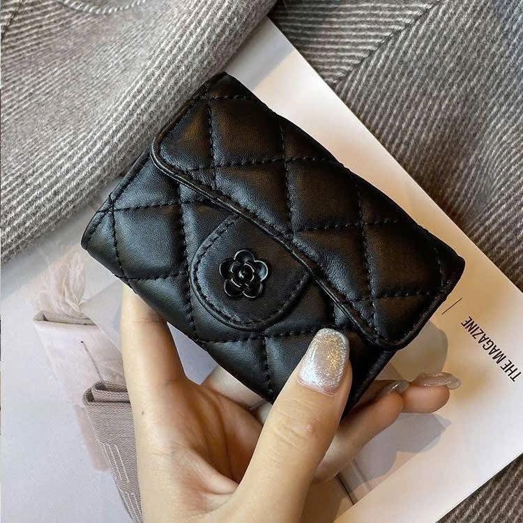 Ví da nữ nút bấm nhiều ngăn màu đen hoa trà là phụ kiện thanh lịch, tinh tế dành cho phái đẹp. Với thiết kế sang trọng kết hợp họa tiết hoa trà nổi bật, sản phẩm không chỉ tiện dụng mà còn giúp tôn lên phong cách thời trang nữ tính, hiện đại.